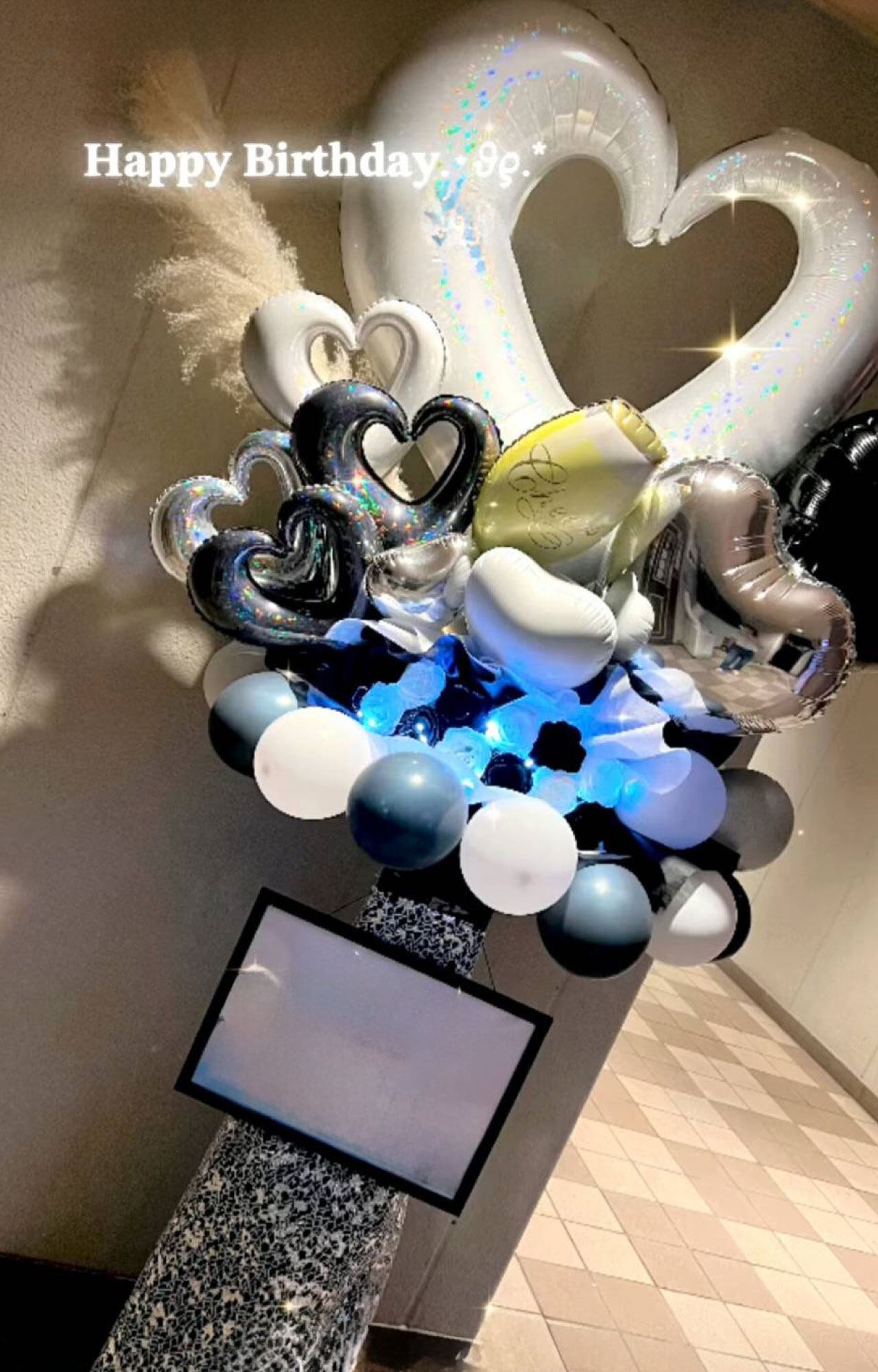 一段スタンドタイプの豪華なバルーンギフト。結婚式や開店祝い、イベントステージ装飾に最適です。